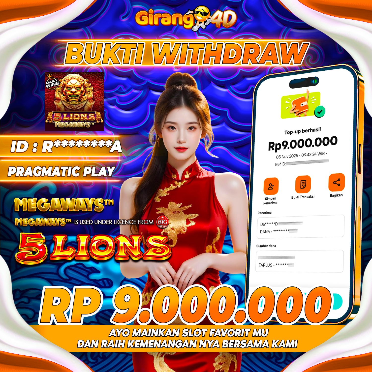 Selamat Kepada Id : R*******A Atas Withdraw Rp. 9.000.000 Juta Hari ini. Ditunggu Withdraw Selanjutnya dan ajak juga teman temannya bergabung di GIRANG4D