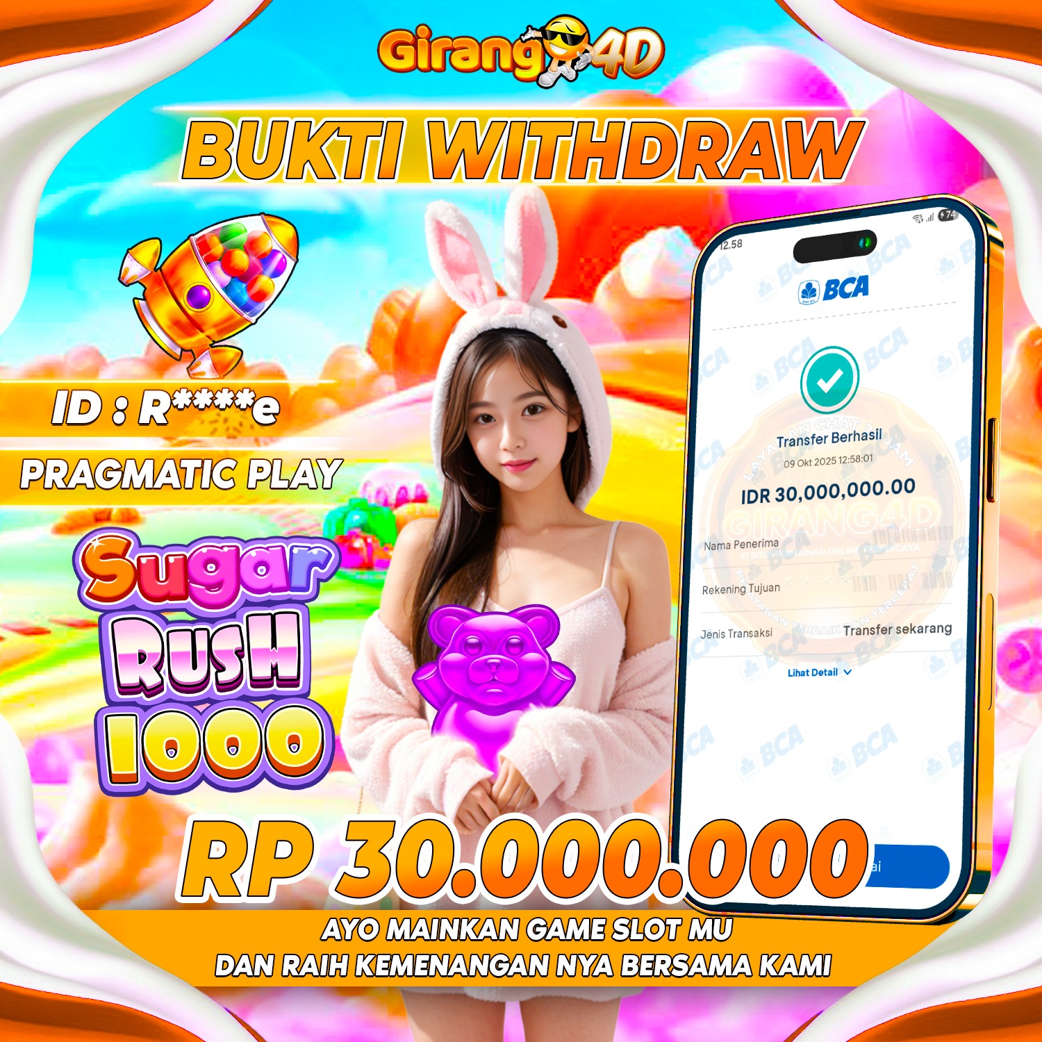 Selamat Kepada Id : Re***e Atas Withdraw Rp. 30.000.000 Juta Hari ini. Ditunggu Withdraw Selanjutnya dan ajak juga teman temannya bergabung di GIRANG4D
