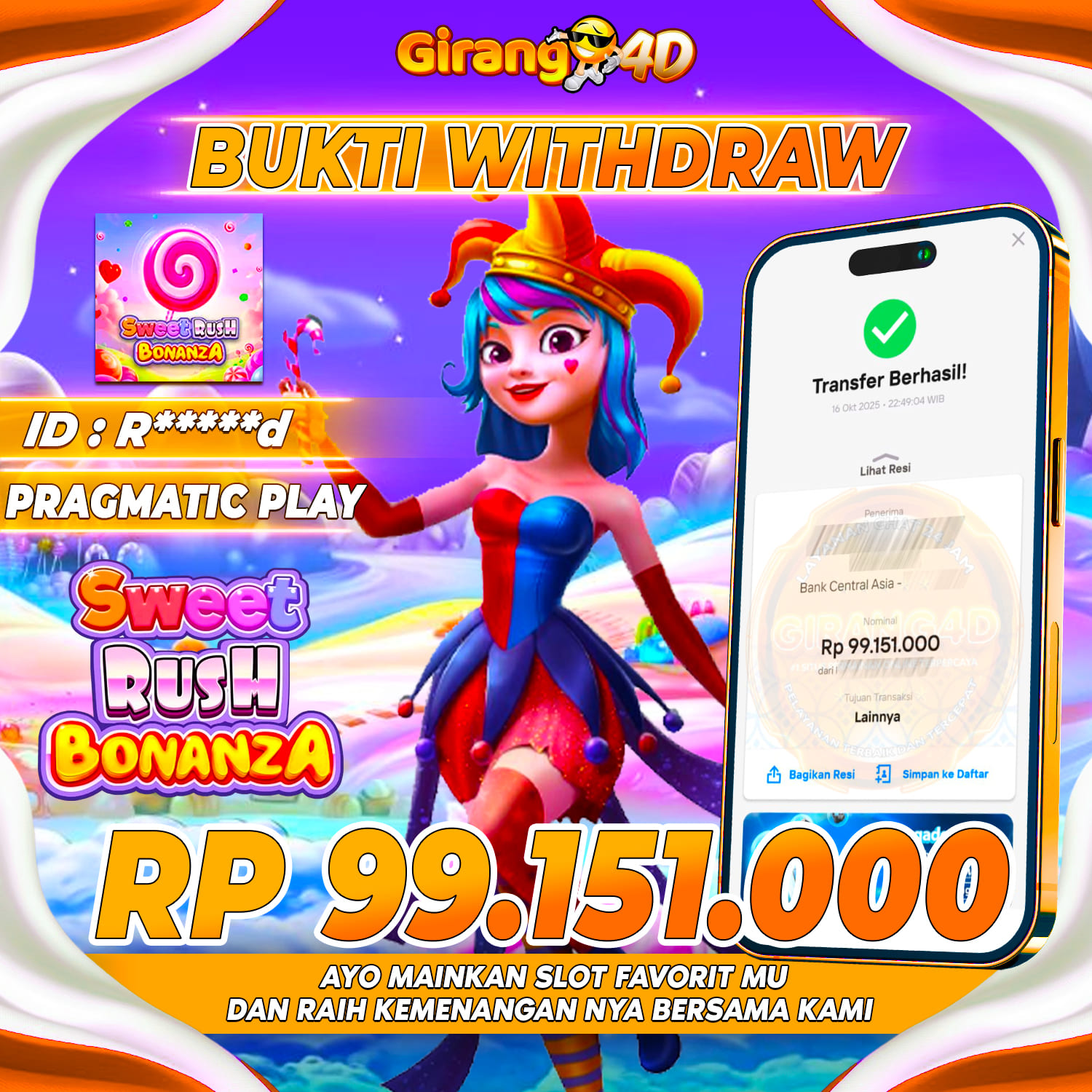 Selamat Kepada Id : R*****d Atas Withdraw Rp. 99.151.000 Juta Hari ini. Ditunggu Withdraw Selanjutnya dan ajak juga teman temannya bergabung di GIRANG4D